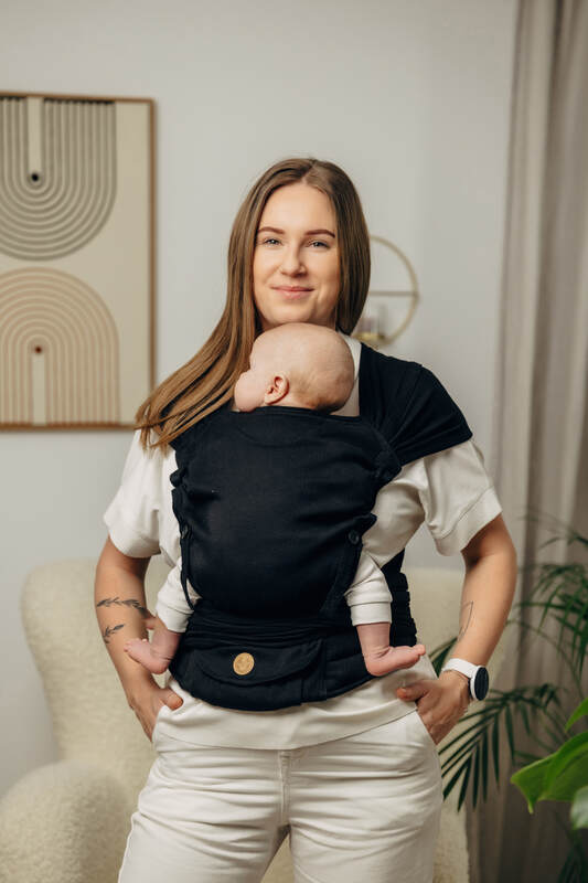 LennyHybrid - porta-bebé de meia fivela, Tamanho Padrão, LITTLE HERRINGBONE - EBONY BLACK